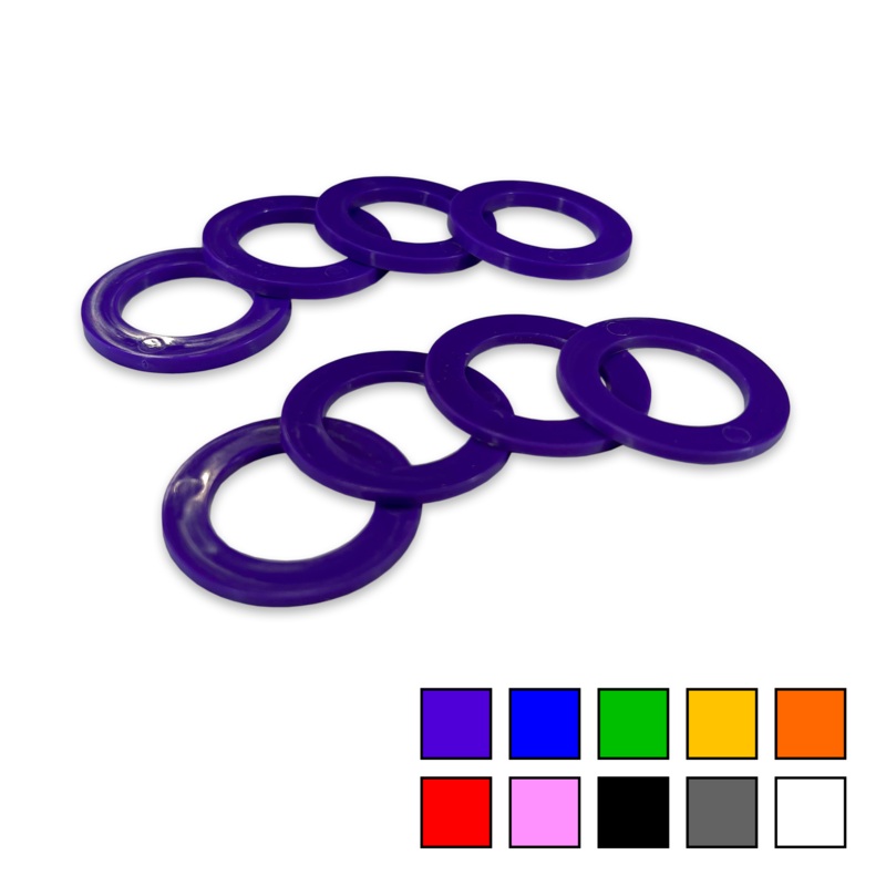 Two different thickness washers are included so you can mix and match sizes to find the perfect tightness to quiet down your ride. Available in 10 popular colors to match your rig or add that subtle accent color.
